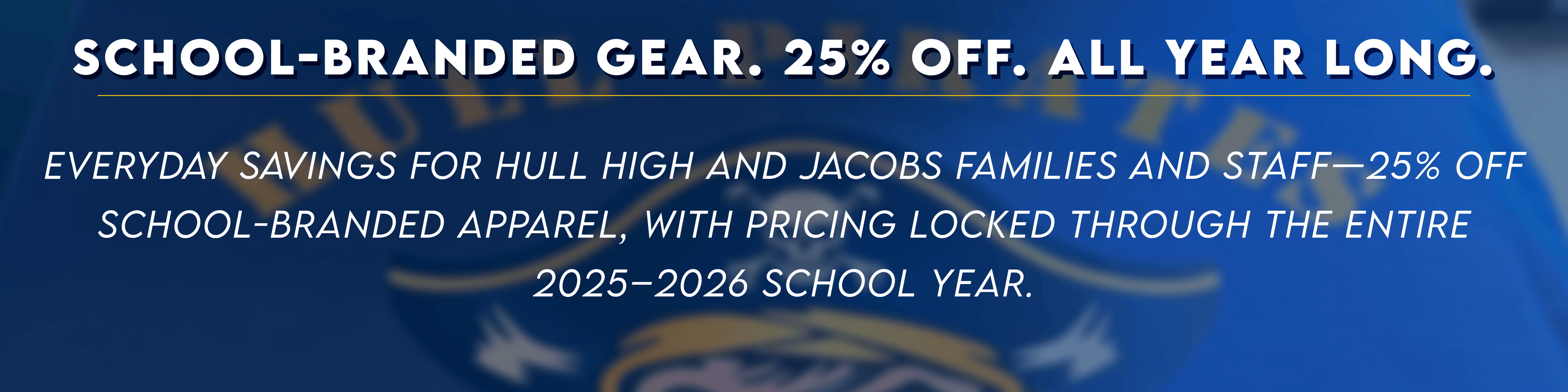 Hull High and Jacobs families and staff can shop school-branded gear at guaranteed discounted prices all year long.